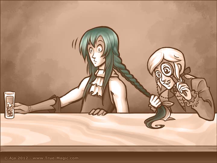XDXDXD I love it! The rollover caption is the best part, as always. (Not to say that the art isn’t simply beautiful, but the rollover always adds that little extra humor that makes me crack up.) Bahaha, Gauth looks so confused. Great job, Aja!