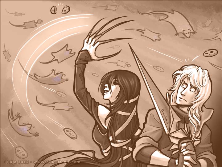 Friday, January 25th, 2013For Xandinavian! She wanted to see her characters Noah and Cat… with Noah getting annoyed at Cat for taking something too literally: