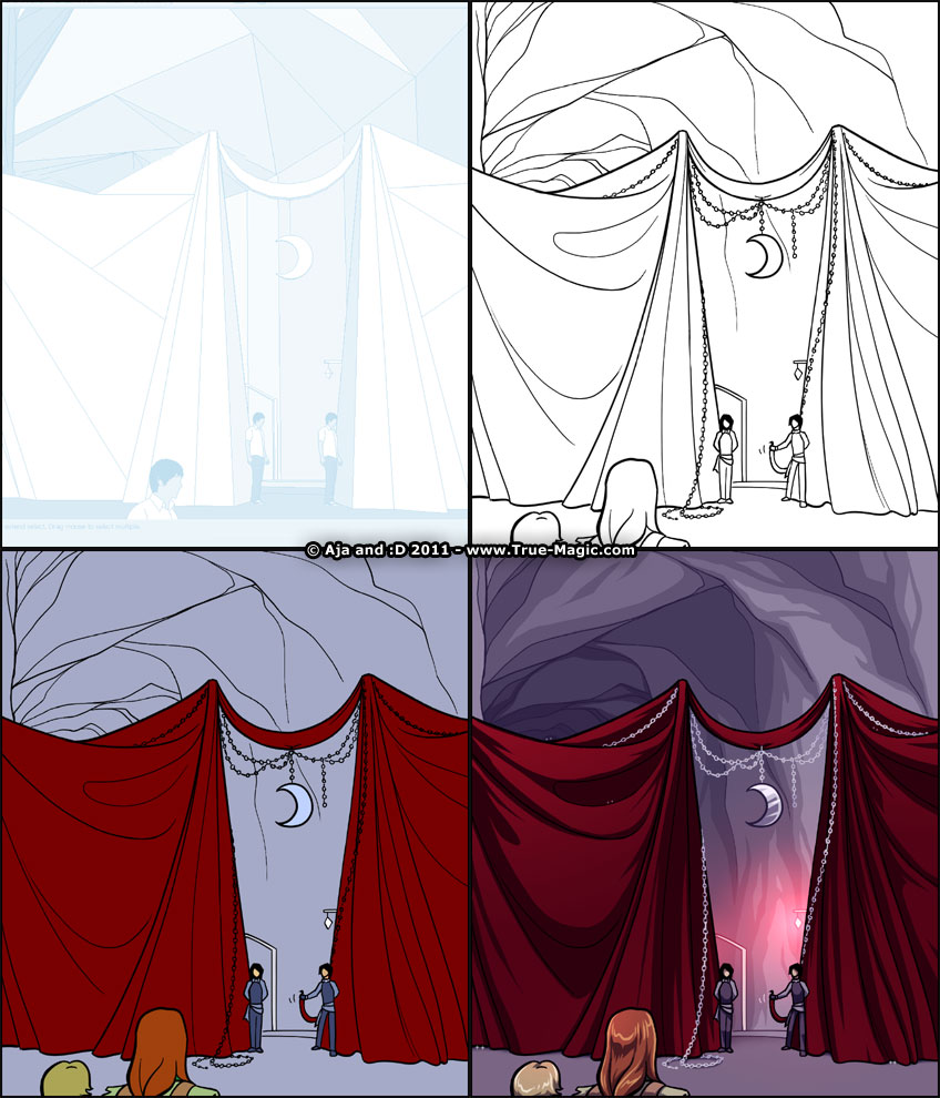 Just for fun, here are some progress shots from the last panel of Page 150, along with a few tips for being lazier more efficient about drawing: